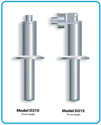 The OxyProbe D210 and OxyProbe D215 D.O sensors are unique in their construction. The front end of the sensors are the same as the 19 mm sensor, with the smaller diameter and no crevices or o-rings. They fit directly into a 1.5” sanitary pipe tee, eliminating the need for a housing, reducing contamination risks. Designed with an integral 1.5” sanitary flange, a gasket seal at the flange holds the sensor securely in place.