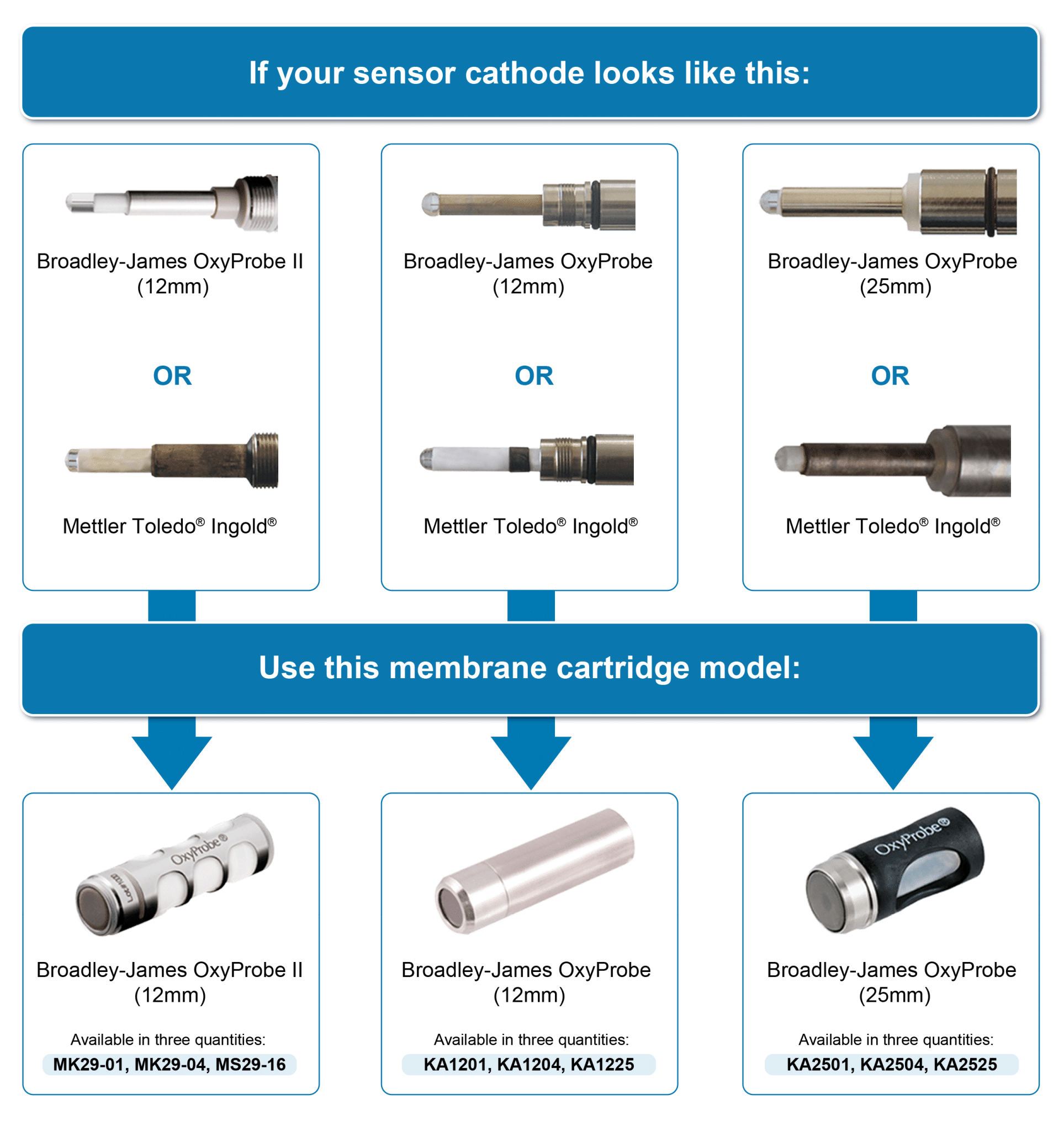 There are two distinct types of 12 mm DO sensor cartridges: one for the traditional style sensor (for example, OxyProbe D140) and one for the newer style OxyProbe II sensors. Please make sure you received