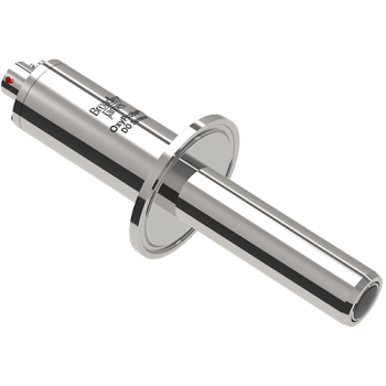 These sensors are unique in their construction. The front end of the sensor is the same as the 19 mm sensor, with the smaller diameter and no crevices or o-rings. It fits directly into a 1.5” sanitary pipe tee, eliminating the need for a housing, reducing contamination risks. Designed with an integral 1.5” sanitary flange, a gasket seal at the flange holds the sensor securely in place.