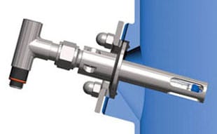 The Model D210 or D215 sensor installed in a NA-connect® port offers potential benefits in biotech applications. The unique design of the port offers increased drainage around the port and most effective Clean-In-Place (CIP). This port, which is almost flush to the vessel wall, allows the use of a 19 mm sensor front end, since there is no need for a forward o-ring to seal the sensor into the vessel. Minimizing or eliminating the cracks or crevices improves cleanability.