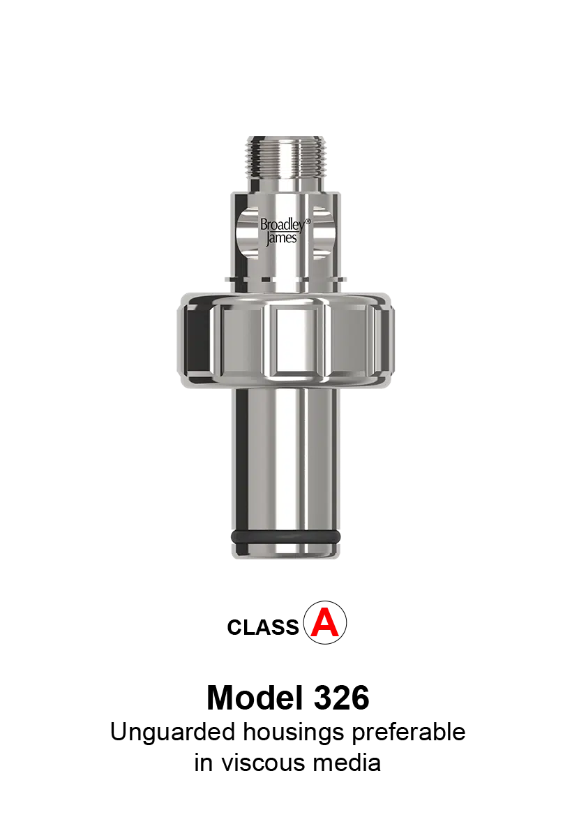 - Guarded version for viscous media also available (model 336).