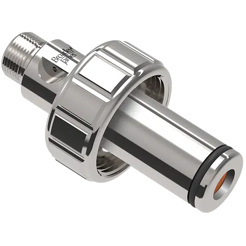 The pH electrode is secured to the housing by a free-spinning threaded retainer nut. This allows the electrode to be installed and removed from the housing without twisting or disconnecting the electrode cable.