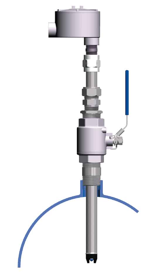 An assortment of insertion lengths are available from 2 inches to 27 inches. Viton O-ring seals are incorporated throughout this housing to prevent damage to the sensor and to retard process seepage during insertion and retraction procedures. The sheath is designed with blowout protection, should the compression fitting be loosened at the process operating pressure. The SA877 sensor housing is designed with replaceable components providing simple and economic servicing.